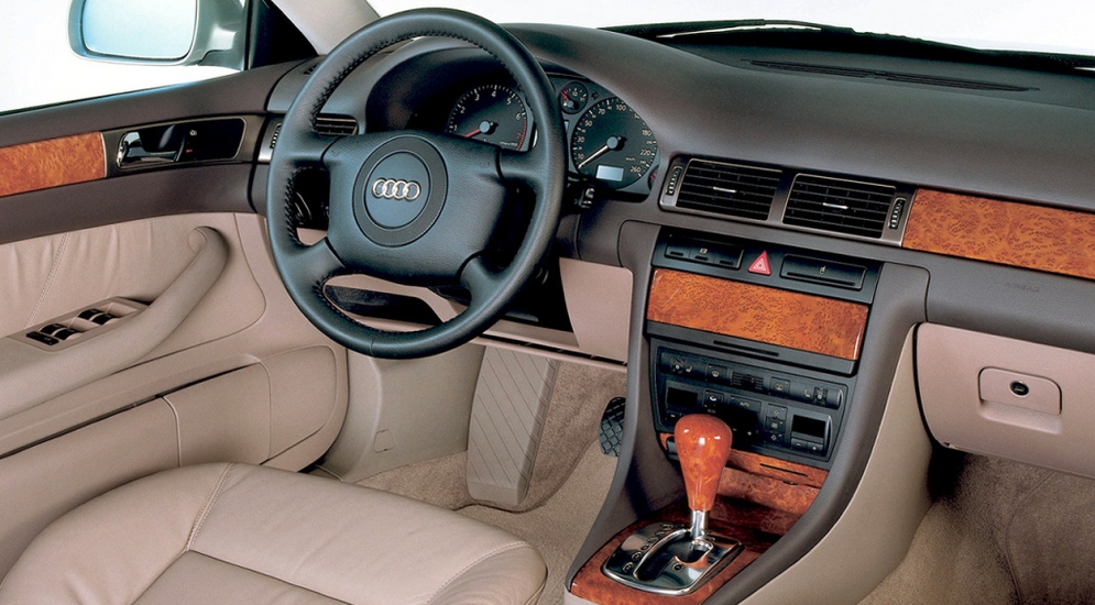 За специфическое качество исполнения большие Ауди часто называют «холодильниками». Нет, внутри не холодно, тут отличные блоки климатической установки, двухзонные, с автоматическим климат-контролем и очень приличной мощности. Просто звук закрывающейся двери очень уж напоминает. И качество исполнения – как у хорошей бытовой техники: ничего не торчит, не скрипит, но если очень уж лезть везде руками, то найдутся и недорогой, окрашенный «под металл» пластик, и твердые поверхности. Ощущения немного «прохладные», но в недостатке качества вряд ли можно обвинить. Сделано действительно на совесть, и материалы выбраны хорошо. И качество окраски – тоже как у хорошего холодильника. Это одна из последних моделей Audi, покрашенная действительно хорошо и не ржавеющая до последнего. При этом позиции кузова укрепляются обилием пластиковых элементов и алюминиевыми экранами. Дизайн оказался на удивление жизнеспособным – машина отлично выглядит и по сей день, а капелька старомодности ей только к лицу. При всем при этом машина очень просторная – сказываются компоновочные решения и традиции марки. Места сзади тут больше, чем у конкурентов по классу, а спереди так и вовсе места для ног, пожалуй, слишком много.