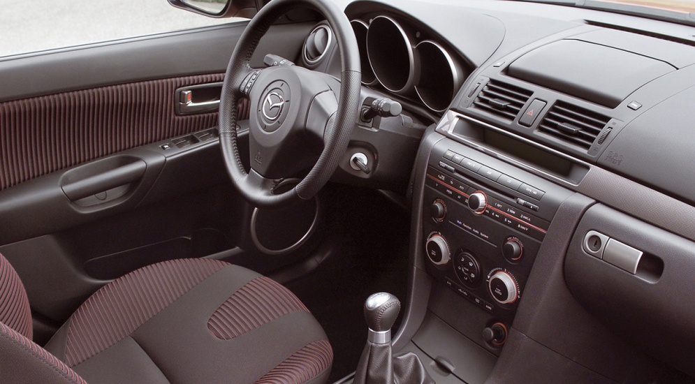 Как и у многих других японских автомобилей, у Mazda3 первого поколения в салоне довольно жесткий пластик, сильно скрипящий в местах соединений, особенно на морозе. Помогают от этого фетровые прокладки, которые можно сделать самому, если не лень разбирать салон. Скрипят и механизмы регулировки сидений, но их можно просто смазать. А вот от затертостей на кожезаменителе "лекарства", кроме перетяжки, нет.