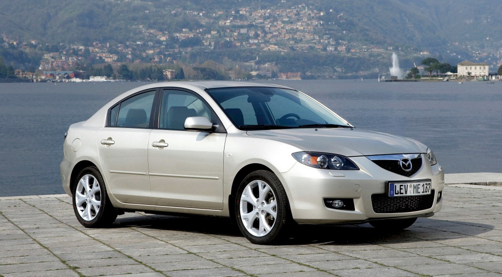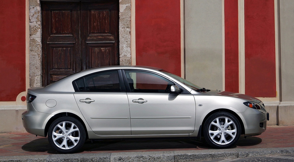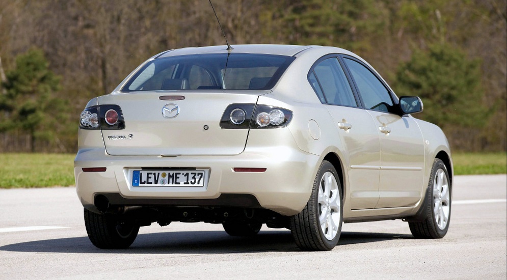 Mazda3 (сами маздовцы любят писать название слитно — Mazda3) стала третьим автомобилем японского концерна в новом харизматичном стиле Zoom-Zoom после "шестерки" и "двойки". На фоне откровенно скучной Mazda 323 она смотрелась очень свежо и даже вызывающе. Свою платформу автомобиль делит с Ford Focus 2 и Volvo S40, однако, в отличие от Mazda2, которая является "перелицованной" моделью Ford Fiesta, "тройка" разработана с нуля и лишь отчасти конструктивно схожа с "Фокусом". Все силовые агрегаты у "Мазды" оригинальные. Производство Mazda3 в Хиросиме начались в июне 2003 года, а до России автомобиль добрался лишь в начале 2004-го. Помимо Японии, машины собирали также на Тайване, в Колумбии и Иране, но для собственных внутренних рынков — в России встречаются исключительно "японцы". В 2006 году "тройка" пережила рестайлинг, который не слишком заметен снаружи, но весьма содержателен с технической точки зрения. Фейслифтинговую версию проще всего опознать по радиаторной решетке: у новой версии она черная, в мелкую сетку, с широкой хромированной полосой сверху, а у дорестайлинговой она окрашена в цвет и имеет три горизонтальные поперечины. Также слегка изменилась форма противотуманок, совсем уж неуловимо — бамперов. На этом список экстерьерных новшеств исчерпан. Внутри появились новые варианты отделки светлым пластиком, но самое главное — это доработанная шумоизоляция и внедрение системы изменения фаз газораспределения на 2-литровых двигателях, а кроме того — обтекатели на днище перед колесам, которые улучшили аэродинамические свойства.