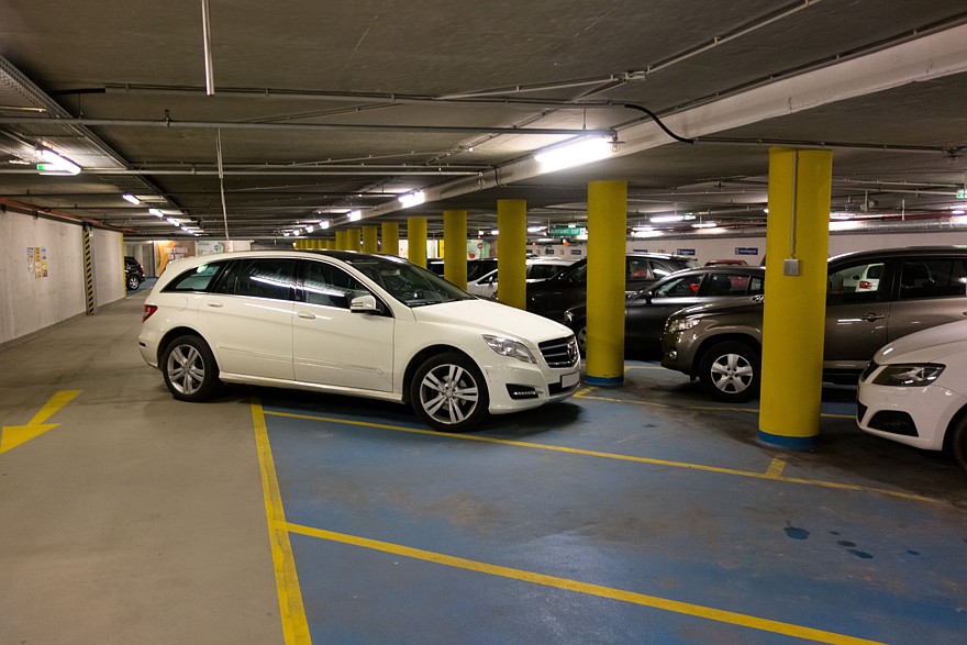 Если разметка на паркинге отсутствует, выберите место шириной порядка 2,5-3 метра в зависимости от габаритов вашего автомобиля.