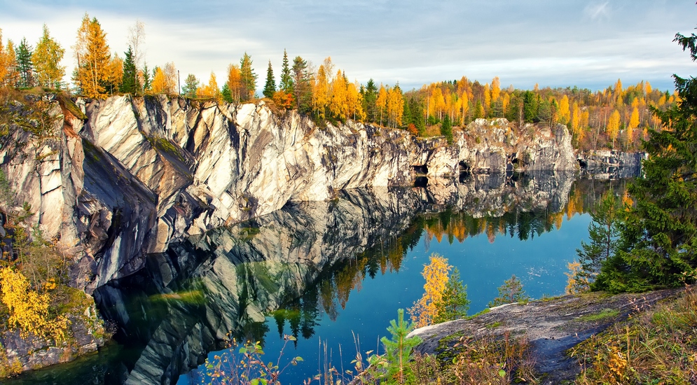 Одним из самых известных и популярных мест в Карелии можно, наверное, назвать именно комплекс "Рускеала", расположенный рядом с одноименным поселком. Мраморный карьер, заполненный грунтовыми водами, привлекает ежегодно тысячи туристов со всего мира. Протяженность карьера с севера на юг составляет около 460 метров, а ширина — 100 метров. Глубина карьера превышает 50 метров.