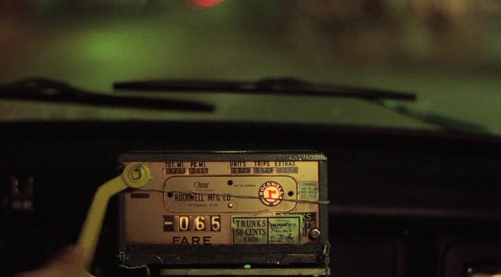 Мрачный город в свете слепых фонарей предстает в глазах таксиста новым Вавилоном: загаженные переулки, скелеты фабричных труб, пандемия человеческих образов, задыхающихся в смоге. Перед Трэвисом развертывается вся панорама людских грехов, и единственное, о чем он мечтает, это о дожде, вселенском потопе, который «смоет с улиц всею эту падаль». Но пока этого не случилось, он вынужден притворяться вместе со всеми:
