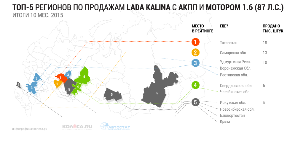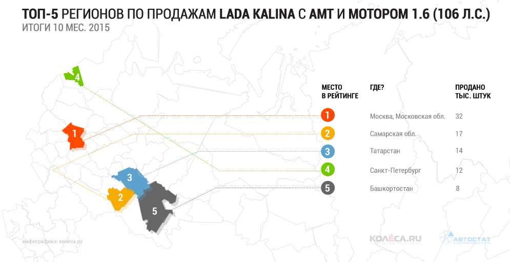 Но готовы ли люди на самом деле переплачивать за Калины с японским «автоматом», да ещё весь срок эксплуатации переплачивать за бензин? В нынешних экономических реалиях – не готовы. Это подтверждает наш опрос в материале о «роботизированной» Гранте, где своё мнение высказали более 5 000 человек. Почти 58% предпочли коробку АМТ, а «автомат» захотели менее 20%, остальные же остановились на МКПП или выбрали вариант «я так и не понял, в чем разница». Об этом же говорит и представленная в этом материале инфографика – в 2015 году автомобилей Lada Kalina в кузове универсал с АКПП было продано гораздо меньше, чем годом ранее.