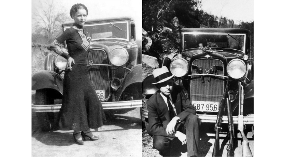 Редкие кадры настоящих Клайда Бэрроу и Бонни Паркер породят целую волну киношных и обывательских подражательств…