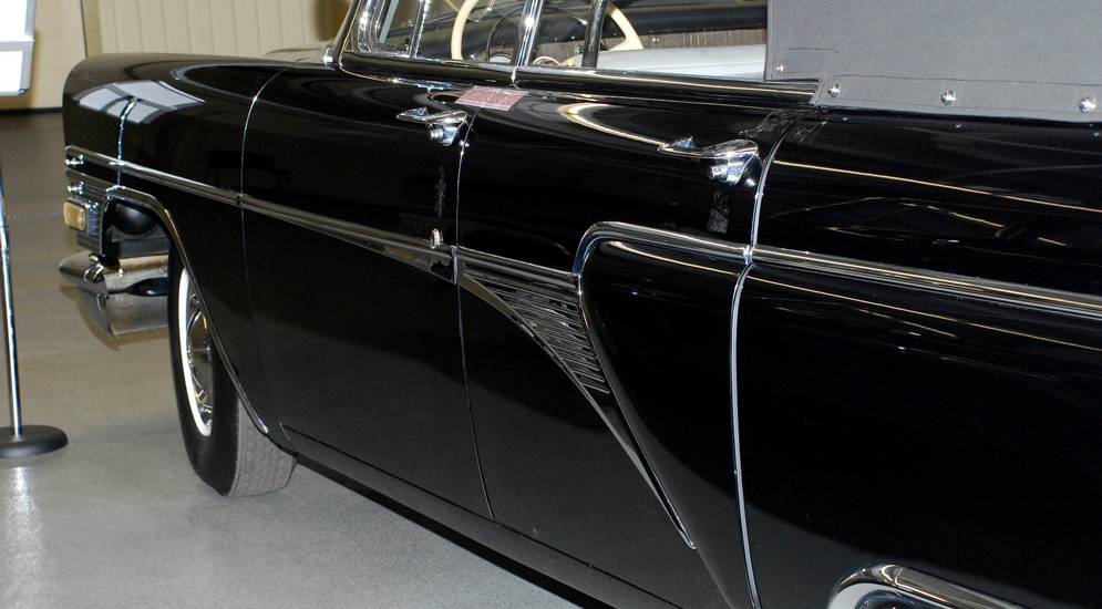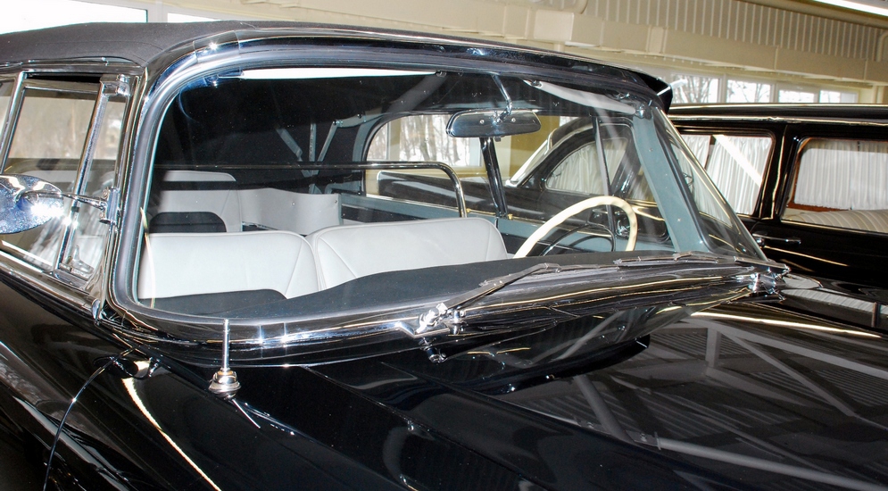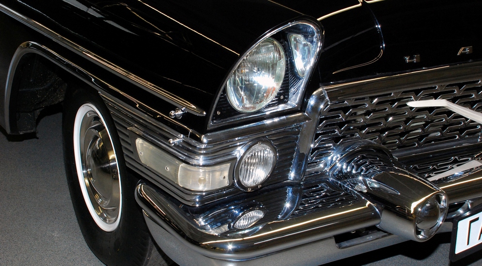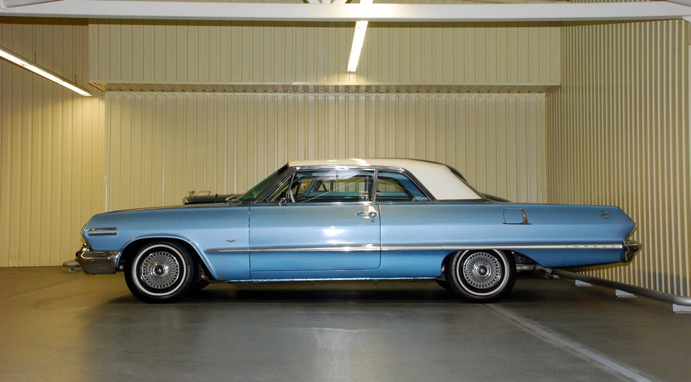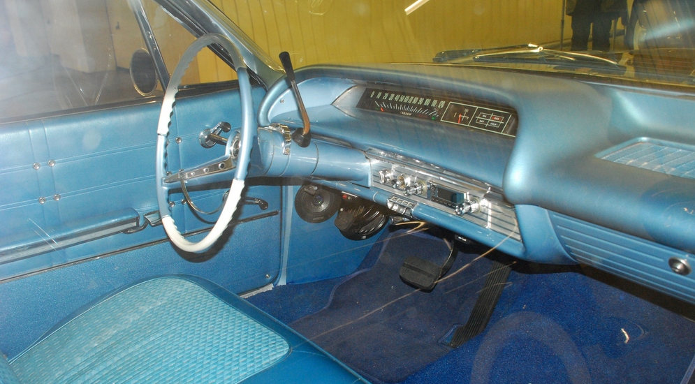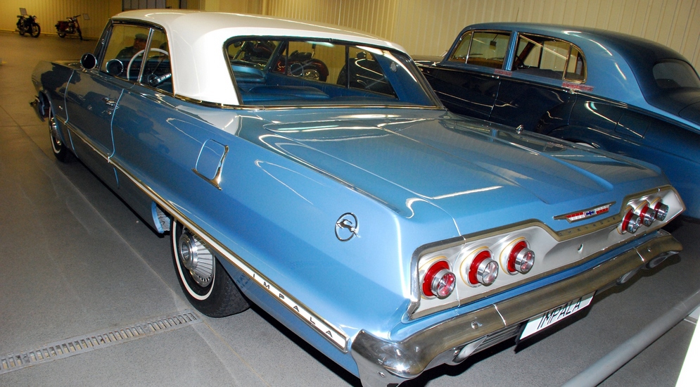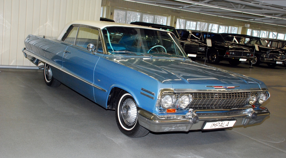 В экспозиции Межигорья представлено третье поколение любимого американцами автомобиля Chevrolet Impala в кузове «двухдверное купе». С такой внешностью авто выпускалось в 1962-1963 гг. Традиционно для американских машин того времени Impala была современной внешне (рестайлинг проходил чуть ли не ежегодно), а вот технической новизной купе не блистало. По уровню технического развития машина находилась на одном уровне с нашей ГАЗ-21. Подвеску, генератор, помпу, карданный вал приходилось часто шприцевать, масло требовало замены через 3-4 тысячи км. Отопитель салона и усилитель тормозов предлагались только за доплату. По одной из версий, небесно-голубое купе – это подарок ко дню рождения самого главного украинского чиновника.