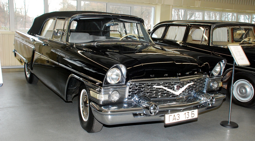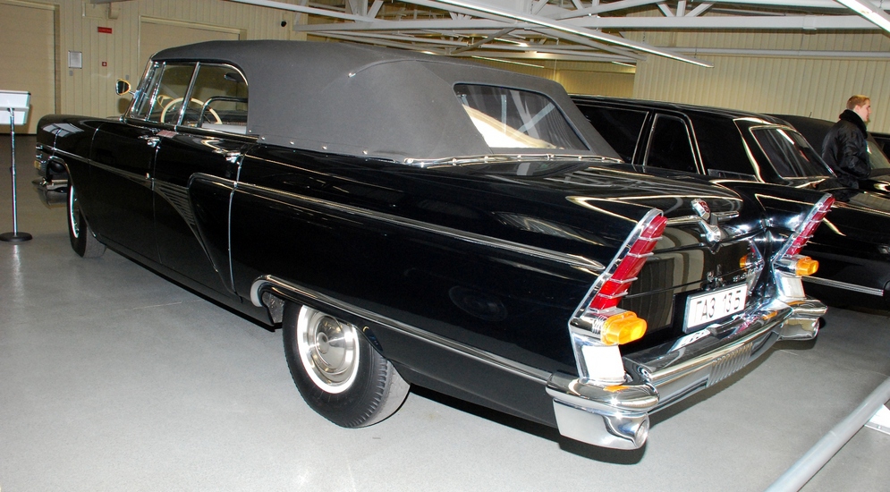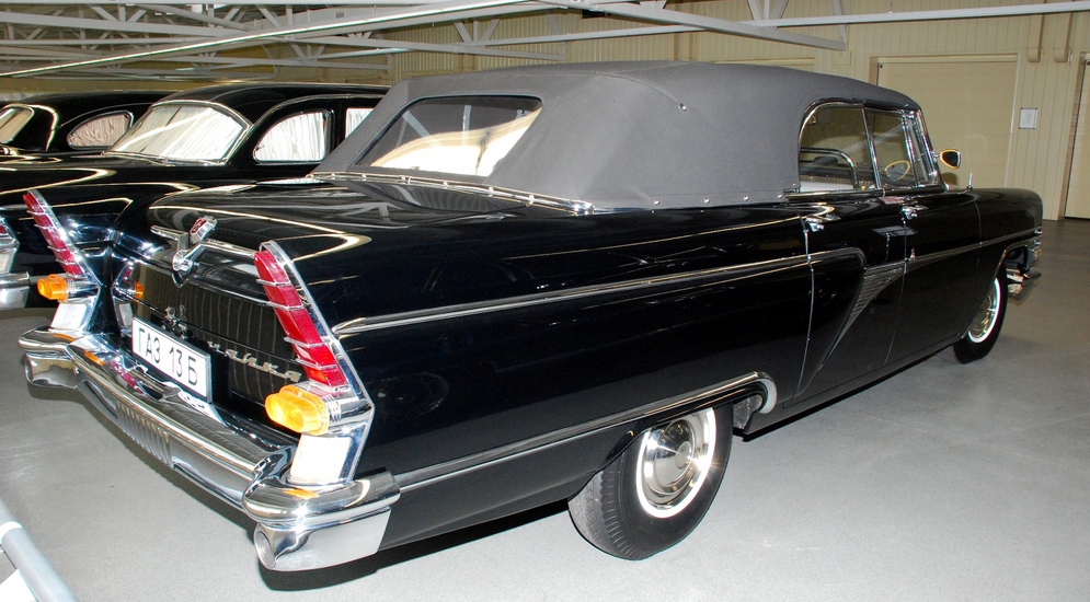 Кабриолет на базе правительственной «Чайки» огромная редкость. От седана машина отличалась усиленным кузовом, наличием поручней на заднем ряду для передвижения стоя и пр. Двери не имели рамок, вместо них на самих стеклах присутствовали металлические окантовки, которые убирались в двери. Мягкий верх у машины поднимался с помощью электропривода с водительского места. Заднее сидение стало узким из-за механизма подъема крыши, общее количество мест сократилось до шести. Всего с 1961 по 1981 год по разным данным изготовили 22-25 таких кабриолетов. До наших дней сохранилось около десятка «Чаек» с мягкой крышей. Представленный экземпляр все время служил в Киеве и обслуживал официальные делегации первых лиц иностранных государств. После был списан и попал на киностудию имени Довженко, откуда уже в 2000-е ее поочередно пытались заполучить несколько украинских коллекционеров ретротехники. В итоге, после тщательной реставрации авто заняло место в коллекции В. Януковича.