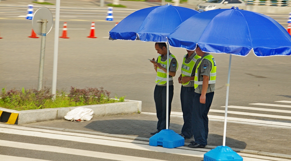 Пешеходы с водителями друг друга презирают. Водители не обращают ни малейшего внимания на переходы! Не пропускают не только на нерегулируемых «зебрах», но могут и спокойно ломиться на красный. Тут все не просто хуже, а гораздо хуже, чем в России. У нас можно смело выйти на дорогу и начать играть в гляделки с водителем. Когда человек за рулем понимает, что пешеход твердо намерен реализовать свое право на переход, и приближающуюся машину он видит, то в 99 случаях из 100 автомобиль притормозит или остановится. Проверено не раз. С китайцами «гляделки» не помогают. Они едут с такой железобетонной уверенностью в себе, как будто за сбитого пешехода дают премию. Это касается как частников, так и водителей муниципального транспорта – автобусов, троллейбусов и иже с ними. Пешеходы, кстати, в долгу не остаются. Перебегать шестиполосное шоссе с разделителем с велосипедом наперевес? Пожалуйста. Кидаться под колеса на красный? Спокойно. Чинно переходить оживленную дорогу прямо под знаком «пешеходный переход запрещен»? Каждодневная рутина. Отдельную опасность представляют собой наездники двухколесного транспорта. Здесь очень популярны электровелосипеды и электроскутеры, хотя хватает и бензиновых. Есть еще моторикши – трехколесные грузовые мопеды, груженые всякой всячиной. Водители и пассажиры всей этой сомнительной техники о шлемах явно не слышали. Ездят или вообще без какой-либо защиты для головы, или в строительных касках. Да ладно бы еще ездили по правилам! Но проезд на красный, пересечение перекрестка наискосок и езда по встречной полосе или обочине – норма. Несколько раз мы на своем автобусе чуть не зашибли подобных чудиков без намека на инстинкт самосохранения. И еще раз подчеркну: никакой агрессии! На лицах китайцев (я специально присматривался) всегда царит спокойная сосредоточенность на процессе и минимум эмоций. Характерное размахивание руками я увидел лишь однажды – когда на трассе произошло небольшое ДТП с «притиранием» при перестроении. Причем возмущался водитель-виновник, который недвусмысленно раскорячился поперек двух рядов. Но и возмущение было какое-то вялое, скорее, с примесью сожаления. Полиции на дорогах достаточно много. В пешеходных зонах они еще и ходят строем, как на параде! Но почему-то никто не стремится прививать водителям не то что культуру перемещения в пространстве – даже привычку соблюдать элементарные правила безопасности... И это, учитывая достаточно суровый политический строй, очень странно.