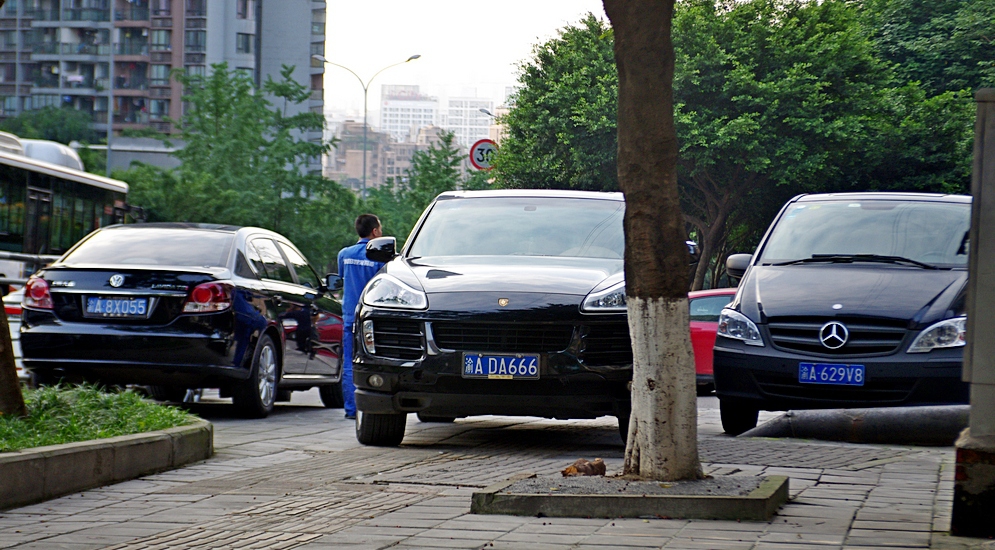 Тут постоянно бибикают. Причем если у нас звуковой сигнал примерно равносилен крику «куда прешь?!» (а часто им сопровождается), то в Китае вариантов перевода – масса. Сигналят тому, кто мешает внезапным маневром – это привычно. Но также вам может побибикать автомобиль, который хочет перестроиться в ваш ряд, мол, «эй там, пропусти меня!». Бибикают перед тем как обогнать или опередить по соседней полосе. А порой определить, зачем это делается, вовсе невозможно. Едет себе машина, издает короткие звуки... Может, просто водителю нравится жать на большущую кнопку на руле. В городе часто встречаются знаки с перечеркнутым клаксоном, но помогает слабо. Беспорядочные перестроения на трассах – в порядке вещей. «Сбоку образовалась дырка в два корпуса! Скорей сюда! Ой, нет, стоп, там же впереди грузовик тащится. Обратно! Теперь перестраиваемся левее! Но нам же на съезд направо, поэтому надо сейчас подрезать два ряда и проскочить!» – очевидно, что-то такое проносится вихрем мыслей в голове безмолвных и невозмутимых с виду китайцев за рулем. На трассах много камер, поэтому спиди-гонщиков, носящихся под 200, в Китае не наблюдается. Пару раз попадались машины с наклейками WRC, виниловыми композициями, колхозными спойлерами, и даже встретился заниженный Golf (и сюда добралась зараза!), но перемещались в пространстве они без явных амбиций Себастьена Леба. Что касается тонировки, то китайцы ее любят не меньше русских. Причем у них явно не запрещено тонировать передние стекла – лишь бы был просвет в углу перед зеркалом заднего вида. Это точно какой-то местный стандарт, потому что помимо явно кустарной я видел и заводской вариант такой тонировки с «окошечками».