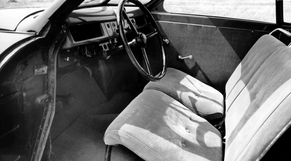 Крышки багажника на автомобиле не было предусмотрено – доступ в него был из салона. Откидываем передние сиденья, откидываем спинку заднего и убираем чемодан в нишу. Характерной особенностью прототипа были закрытые колесные арки – в то время еще весьма активно используемый дизайнерский прием. Кузов прототипа отличала авиационная аккуратность изготовления, которой редко добивались на первых ходовых прототипах машин.