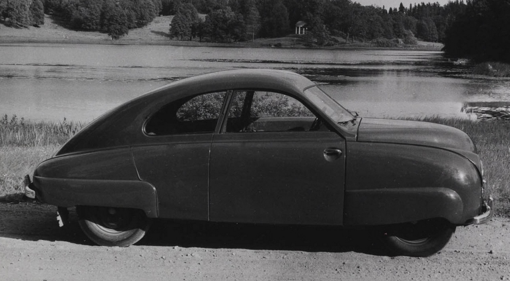 Прототип SAAB представлял собой несущий кузов, изготовленный вручную. Его особенностью было то, что боковины делались из цельных листов железа толщиной 1,2 мм, в которых прорубались дверные проемы. На эти боковины навешивалось переднее оперение, крыша, гладкий пол… Кузов решено было сделать двухдверным, с задней навеской дверей.