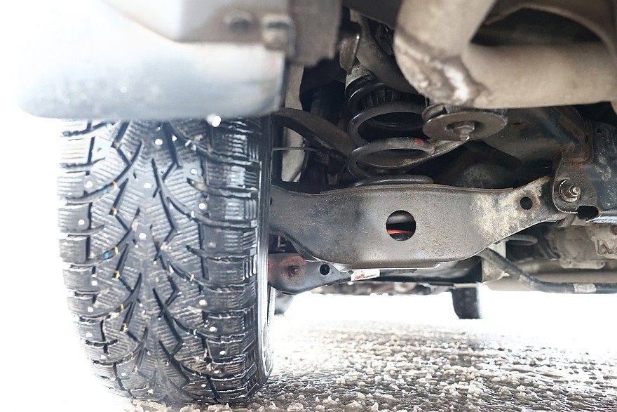 В задней подвеске к 150 тысячам пробега и десяти годам эксплуатации практически у всех машин начинают расслаиваться и отрываться сайлентблоки продольного рычага и развальных тяг. У кроссоверов, которым не повезло, коррозия буквально разъедает сами рычаги, после чего перепрессовка втулок уже невозможна. Оригинальные развальные болты прикипают к оригинальным сайлентблокам почти со стопроцентной гарантией, а вот неоригинальные детали иногда радуют применением более удачных материалов. Главное, чтобы не отгнили «уши» подрамника, к которым крепятся рычаги, а такое случается. Восстановление сваркой вполне возможно, но часто при таких работах точностью разметки пренебрегают, что в итоге выливается в невозможность правильной регулировки углов схождения и развала.