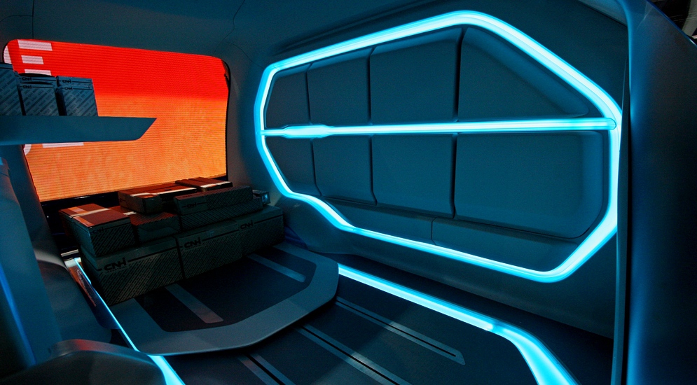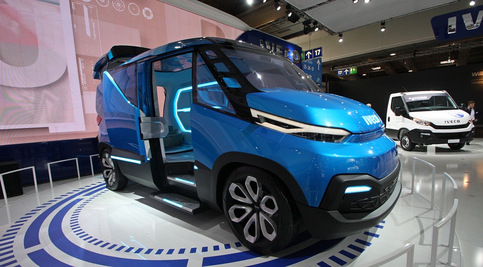 Едва появившись год назад в Европе, новый Iveco Daily получил титул «Европейский фургон 2015 года». Для продвижения нового поколения итальянцы построили концепт Iveco Vision в стиле ретрофутуризма. Здесь всего две двери, боковая и задняя. Через боковую, как в междугородних автобусах, водитель попадает на свое рабочее место.