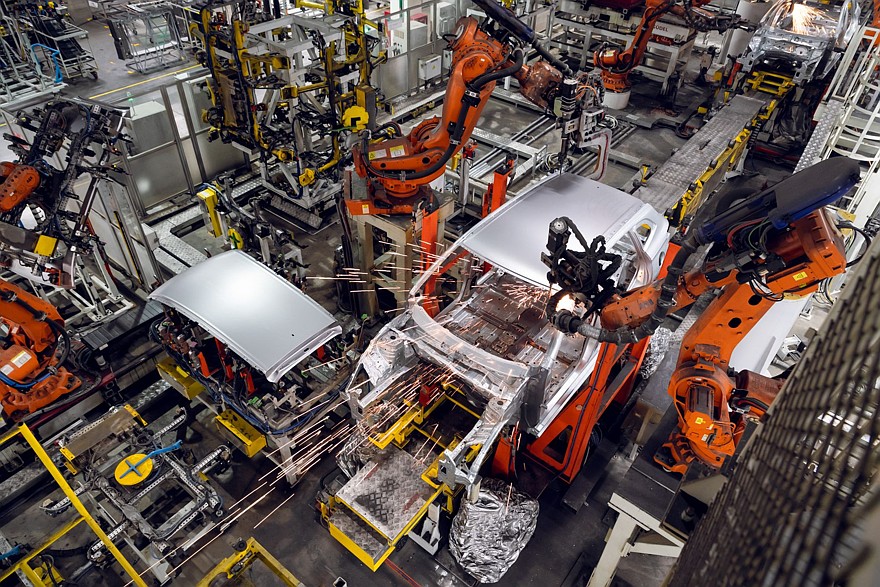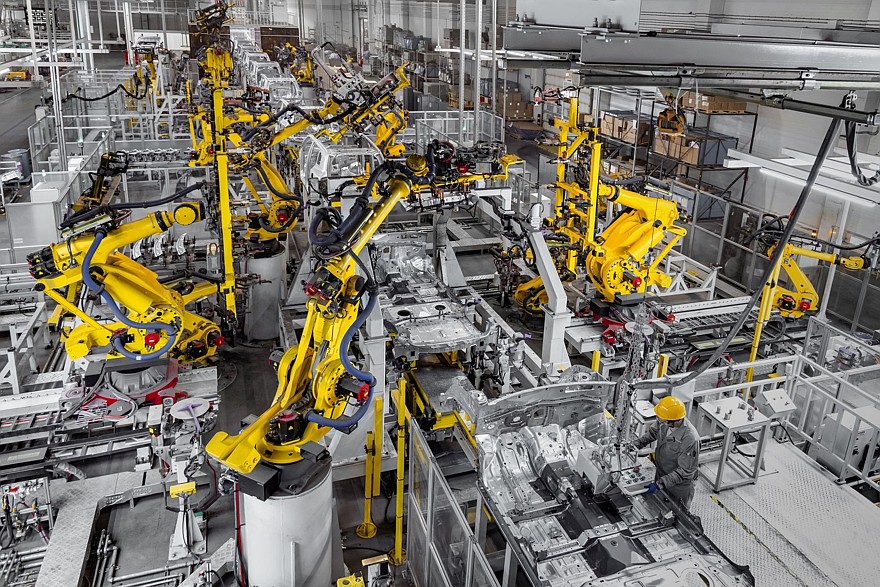 В ходе сборки вручную выполняются 64 операции, а роботов тут только десять. Доля автоматизации составляет 15%, она в несколько раз ниже, чем в цеху мехобработки, но это объясняется спецификой производства.