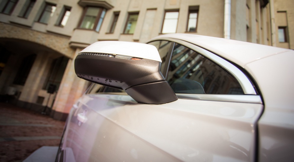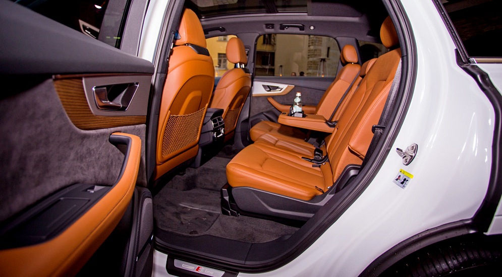 А вот дизайн – видно. Из экстерьера пропали практически все округлые элементы: фары, как и задние фонари – трапециевидные, декоративная решетка радиатора – шестиугольник с крупноячеистой сердцевиной, продольно рассеченной горизонтальными линиями, контрастные вставки в переднем бампере – тоже угловатые… Да что говорить, даже накладки на дверях и небольшой спойлер – не просто «бумеранги»: первые смахивают на лезвие конька, а второй обзавелся острыми «ушками» благодаря «вырезу» в центральной части. В результате, отчасти из-за несколько более «плоской» светотехники, а отчасти просто благодаря чуть иной стилизации автомобиль с некоторых ракурсов выглядит, как подросший A4 или A6 Avant. Хорошо это или плохо? Скорее, хорошо – реальные размеры все равно расставляют все по своим местам, а излишняя грузность и одутловатость крупному кроссоверу ни к чему. К тому же, такому технологичному.