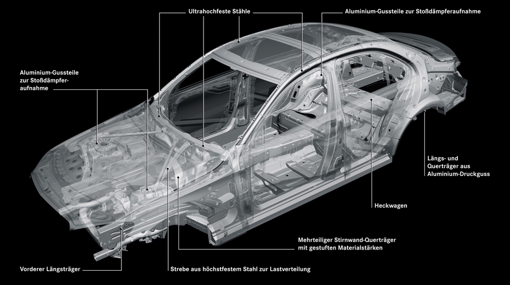 Не прошла даром и работа конструкторов-технологов. Новый MercedesBenz C-class стал сразу на 100 кг легче. Этого удалось добиться благодаря базированию седана на новой модульной платформе MRA и повсеместному использованию алюминия. Фактически кузов нового Мерседеса почти наполовину состоит из «крылатого» металла, в конструкции применены высокопрочные сплавы и композитные материалы.