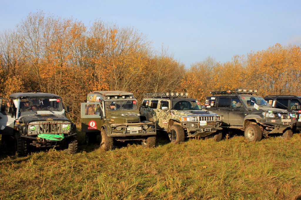 - Обмундирование экипажа (без штурмана на трофи-рейд можно не ехать) должно быть влагостойкое и непродуваемое. Обязательно возьмите резиновые сапоги. Нам, к счастью, с погодой повезло – как раз в день участия выглянуло солнце, на нашем участке было относительно сухо, а температура во второй половине октября поднялась до +16.