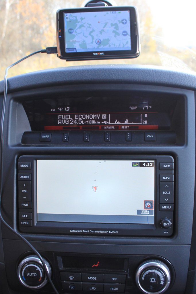 В нашем распоряжении было два навигатора: один штатный «паджеровский», другой – взятый с собой фирмы teXet с встроенной программой «СитиГид». И если обе системы хорошо справлялись со своими задачами в условиях Москвы, неплохо – в условиях крупных населённых пунктах ближайшего Подмосковья, с трудом — в окружении деревушек и дачных посёлков базового лагеря, то на бездорожье оба оказались бесполезны…