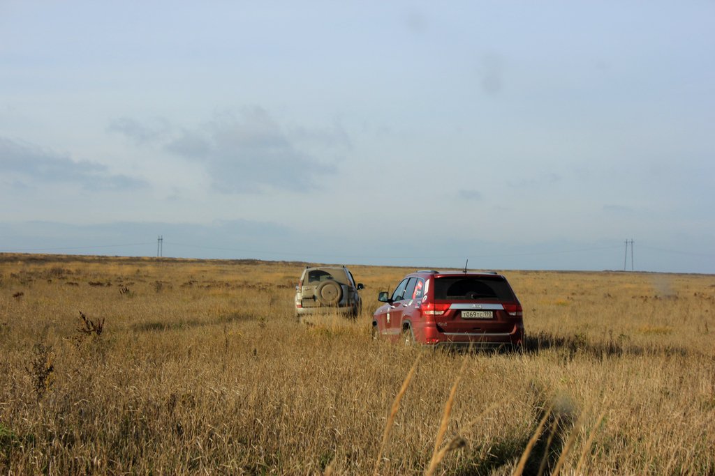 Получив от организаторов походный паёк и листок с координатами контрольных точек, мы двинулись на покорение маршрута. Сразу отметим, что маршрут этот практически полностью исключает движение по каким-либо дорогам. В классе «загонщиков» предстояло напрямую пробираться через дикие поля, редколесья, пересыхающие русла речушек и грязевые участки. А участникам на более подготовленной технике — так и вовсе вброд через реки, болота и леса. Но о них позднее.