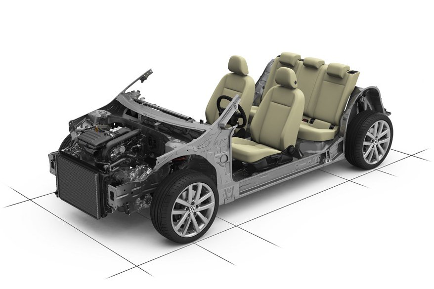 Golf VII построен на новой модульной платформе MQB концерна Volkswagen, которую сами фольксвагеновцы называют также Modular Transverse Matrix. Помимо седьмого поколения Гольф, это же шасси легло в основу нового Audi A3, а в будущем на его основе будут созданы следующие поколения моделей Volkswagen Polo, Beetle, Golf, Scirocco, Jetta, Tiguan, Touran, Sharan, Passat и Passat CC, а также новые модели Seat и Skoda. По словам инженеров Volkswagen, новая «тележка» позволяет конструировать автомобили с разной длиной колесной базы и кузова, размерами колеи и колес, а также схемами расположения сидений. Модели, построенные на ее основе, теоретически можно выпускать на одной производственной линии.