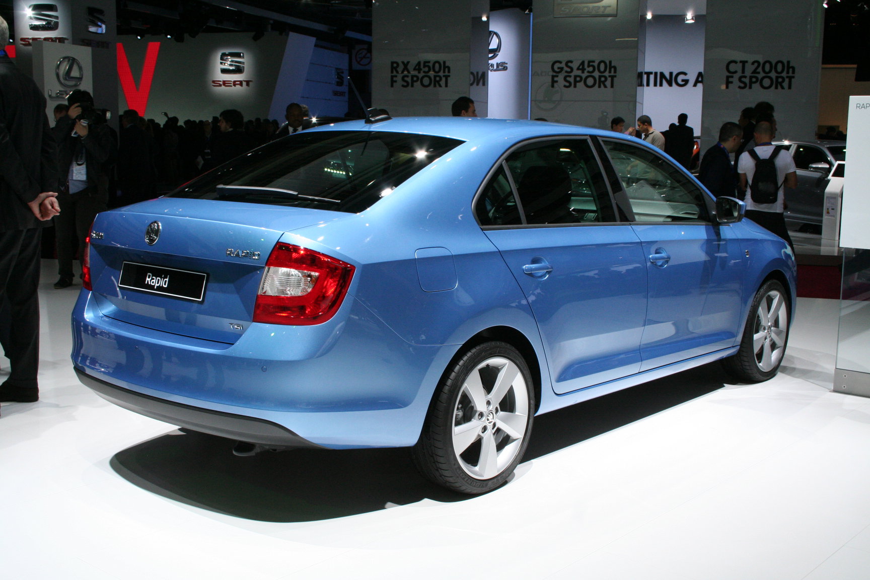 15:02 Skoda Rapid собственной персоной. Мировая премьера, между прочим. Еще один бюджетный автомобиль В-класса, который с нетерпением ждут в России. Продажи авто в Европе стартуют уже в октябре, а выпуск Skoda Rapid в Калуге намечен только на 2014 год. Надеемся, к нам модель попадет намного раньше. Подробнее? Пожалуйста.