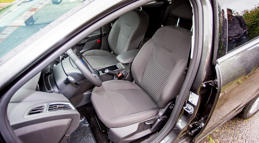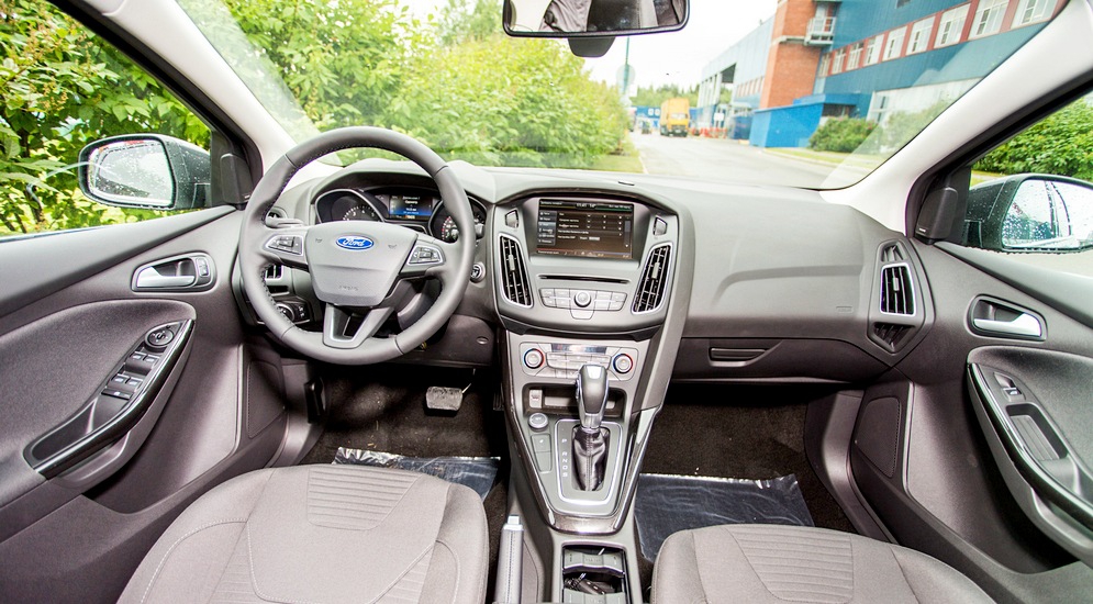 Эргономика салона осталась неизменной – сиденья все так же в меру жесткие, а места так же «без запаса». В свое время только ленивый не ругал третий Focus за тесноту в салоне – здесь и правда не получится «развалиться», он словно облегает вас, как будто вы надели его на себя. Но в целом нельзя сказать, что спереди откровенно тесно – если ваш рост не под два метра, конечно. Еще одним спорным решением является ручное переключение передач, вынесенное на кнопки на правом торце рычага КПП, но об этом мы уже писали в обзоре обновленной Fiesta.