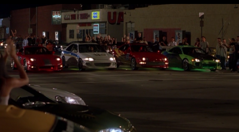 После первого заезда гонщиков накрыла полиция, и Брайану пришлось заехать на недружелюбную территорию банды Джонни Трана. Место это находится по адресу Vietnamese Cultural Court, 9221 Bolsa Avenue, Джонни Тран и его брат взорвали зеленый Mitsubishi Еclipse, который сделал зеленый цвет одним из самых любимых цветов у уличных гонщиков.