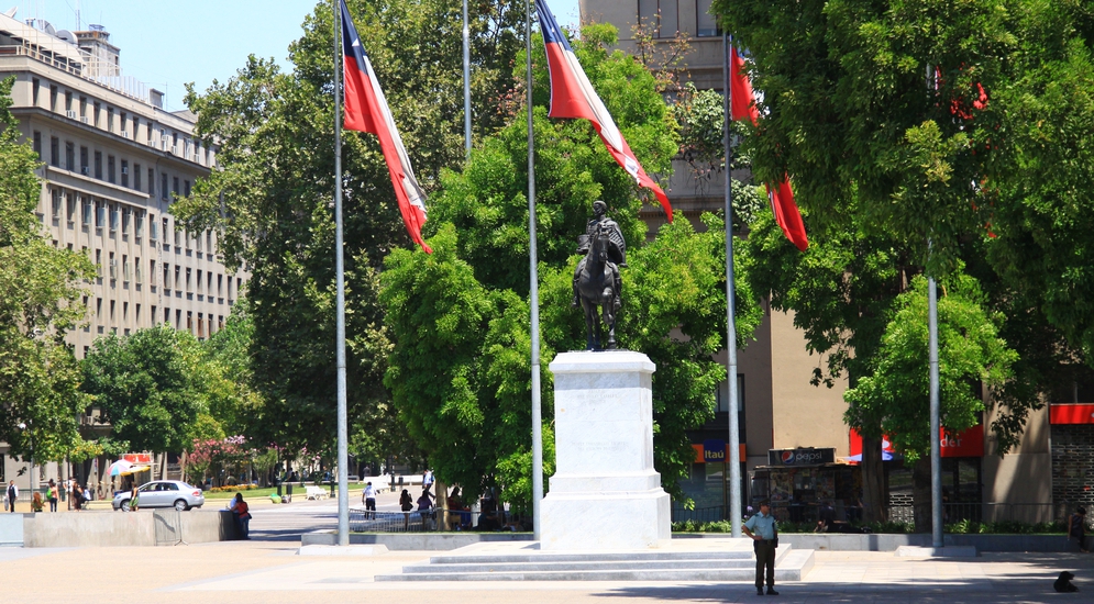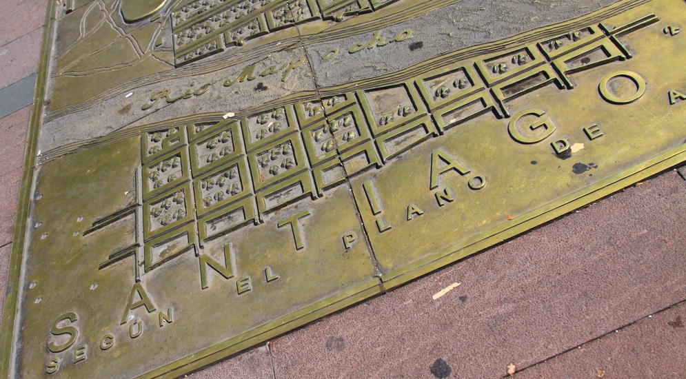 В Сантьяго проживает примерно четверть всего населения страны. Два холма – Серро Сан-Кристобаль и Серро Санта-Лусия – нарушают прямоугольную городскую застройку. Санта-Лусия, на вершине которого высится прекрасный старинный замок, считается наиболее важным историческим местом и достопримечательностью Сантьяго – именно у подножия этого холма и был основан город, а памятник основателю – Педро де Вальдивия – был воздвигнут в 1960 году в честь 150-летия начала войны за независимости Чили на центральной площади города – Пласа-де-Армас.