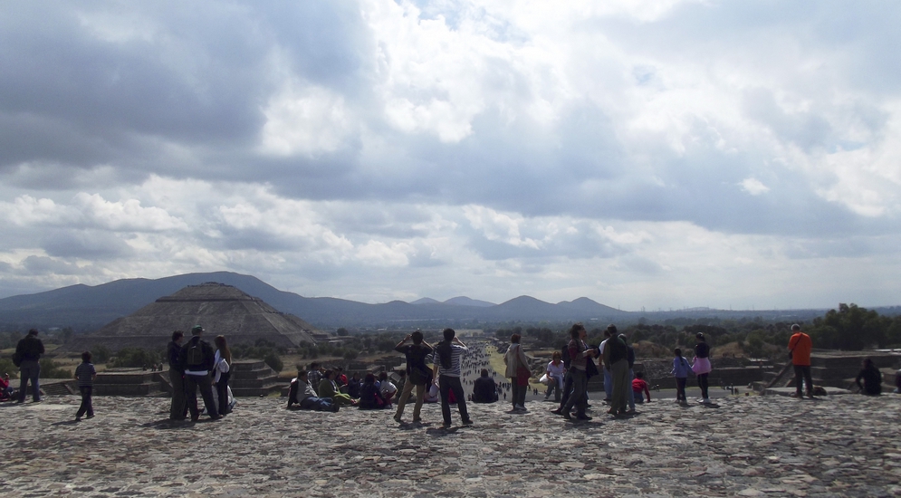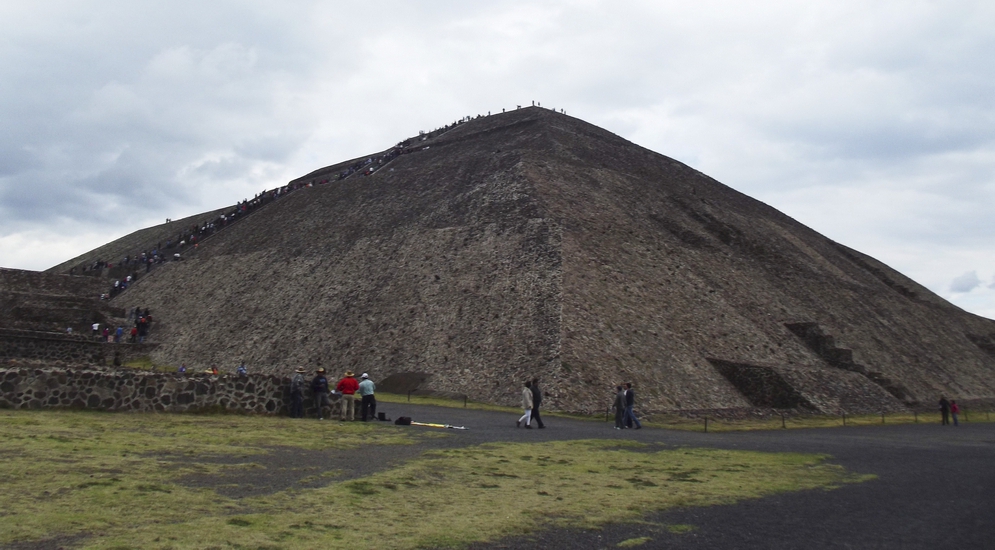 Погода была пасмурной и ветреной, сезон – нетуристическим, потому посетителей было не так много. Теотиуакан предстал во всем своем великолепии. Только представьте: огромные пространства под низким небом, заполненные древнейшими серыми пирамидами. Одна из них, третья по величине в мире, пирамида Солнца была построена еще во втором веке нашей эры.