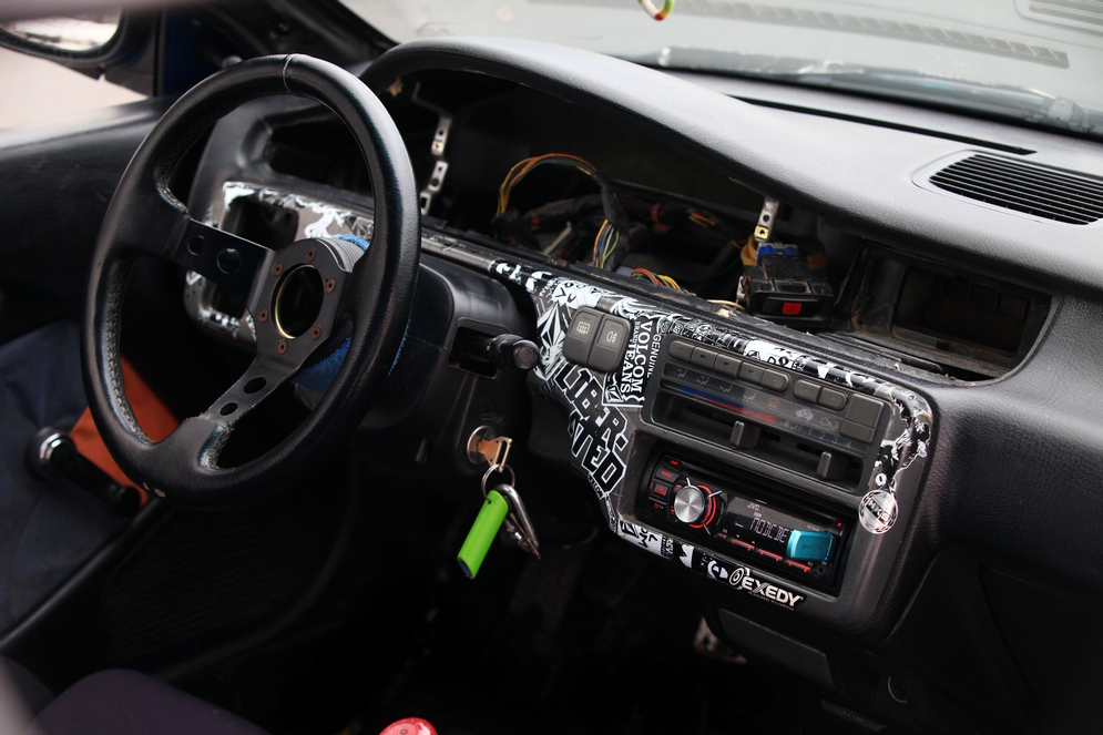 В таком виде он забрал автомобиль обратно в гараж, где принялся за технические доработки. С помощью товарища вместо стокового двигателя D15B был вживлен B16A2 от модификации Civic EG9 – самый доступный вариант из линейки b-серии. Мотор перевесили из машины в машину прямо на улице – свап оказался достаточно прост: выбросить все старое и повесить все, что нужно из нового. Агрегат без проблем завелся, и Сергей остался очень доволен собой и проделанной работой.