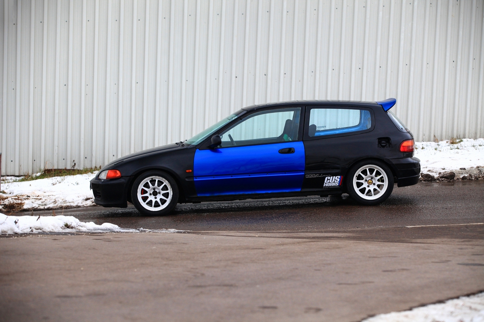 Потерпев крах с первым свапом, наш герой решил больше не доверять "котам в мешке" и собрать новый двигатель сам, с нуля, выбрав самый бюджетный вариант – гибрид B20B16 (низ 150-сильного B20 от Honda CRV, верх B16 от Honda Civic VTi). Ничего особенного, кроме установки выделенной линии подачи масла в ГБЦ для работы VTEC, делать не понадобилось. По этому пути Сергей и пошел – за зиму удалось собрать и поставить мотор. В январе 2014 года он наконец-то начал ездить на своем EG, кстати, устроившись к этому времени на работу механиком в тот самый сервис RRR customz.