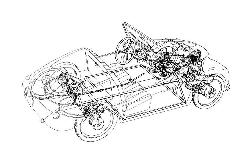 Вместе с тем машина имела независимую подвеску и передний привод, барабанные тормоза на всех колёсах, багажник ёмкостью 24 литра, а при аварии кузов можно было заменить целиком, открутив несколько болтов и в одиночку сняв его с хребтовой рамы. По уверениям фирмы-производителя, максимальная скорость составляла 70 км/ч, разгон до 60 км/ч занимал 16,5 секунды, на сто километров пробега машинка тратила всего 2,5 литра бензина. Но самое главное, в 1950 году за автомобильчик просили всего 1995 дойчмарок или около 5500 долларов в пересчете на курс 2026 года.