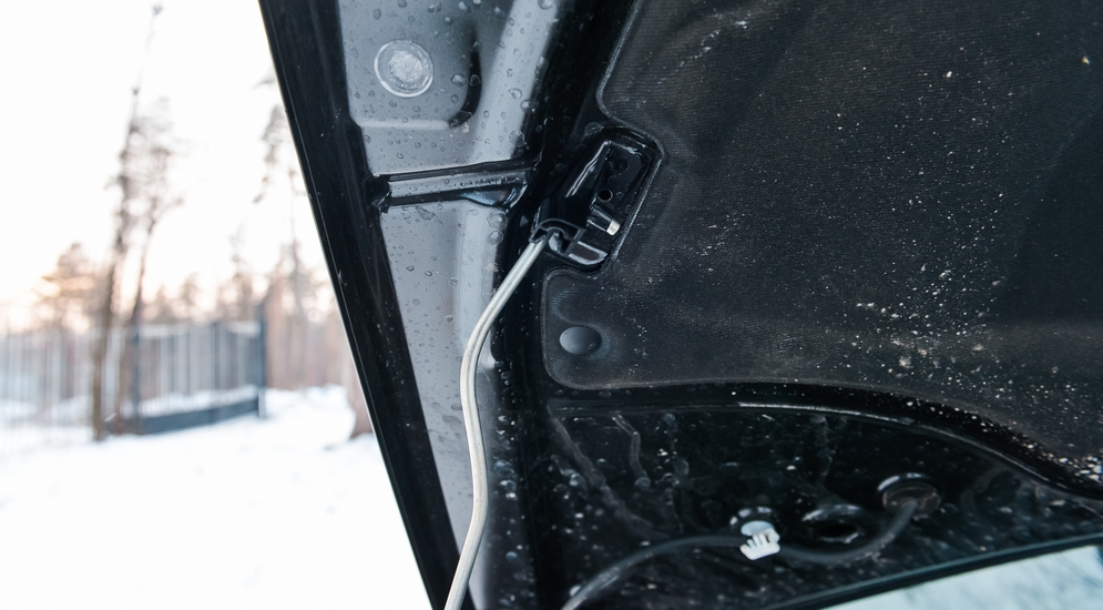 Дальше вы ставите упор, придавливаете его сверху капотом, после чего лишённая фиксации конструкция (упор, извините за тавтологию, просто упирается г-образной законцовкой в металл капота, не будучи никак в нем закреплённым) издаёт пугающий громкий звук, капот слегка вздрагивает… В нашем случае он не упал. Со всеми обнаруженными «болячками» мы планируем в ближайшее время наведаться к дилеру.