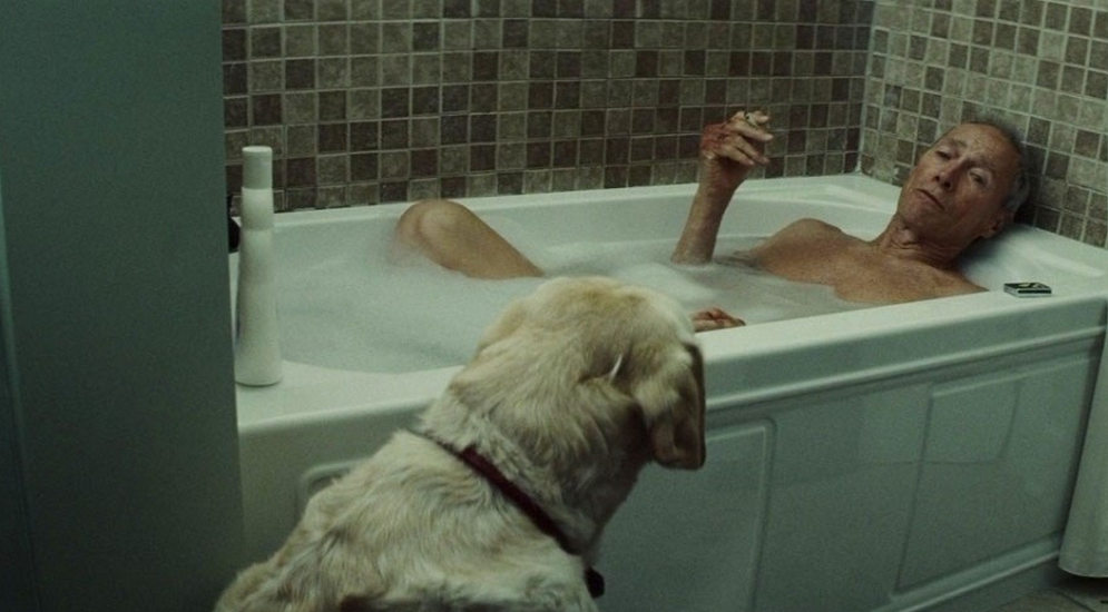 Вот с таким выражением лица персонаж Иствуда присутствует в кадре практически все экранное время. Собака Дейзи, пожалуй, единственная, кто заставляет его улыбнуться…