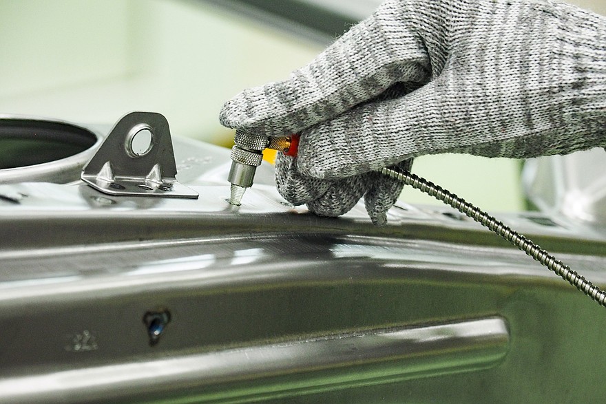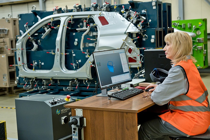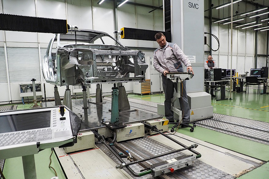Каждый сваренный кузов проходит через контроль внешнего вида, где проверяется, не получили ли поверхности вмятин и забоин, а затем поступает на проверку 1D геометрии с помощью измерительных стендов. Выборочные кузова отправляются на проверку толщины пакета зафланцовки навесных узлов и глубины пробивки VIN-номера.