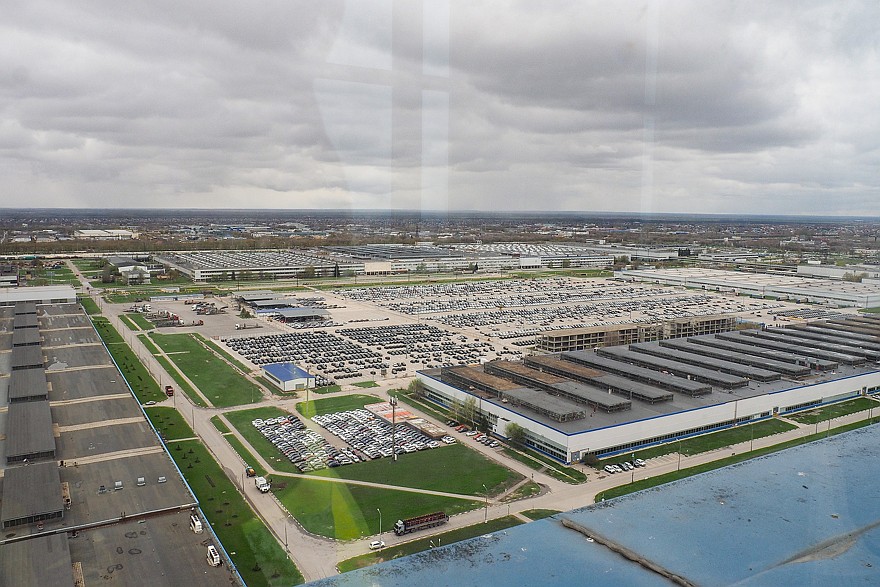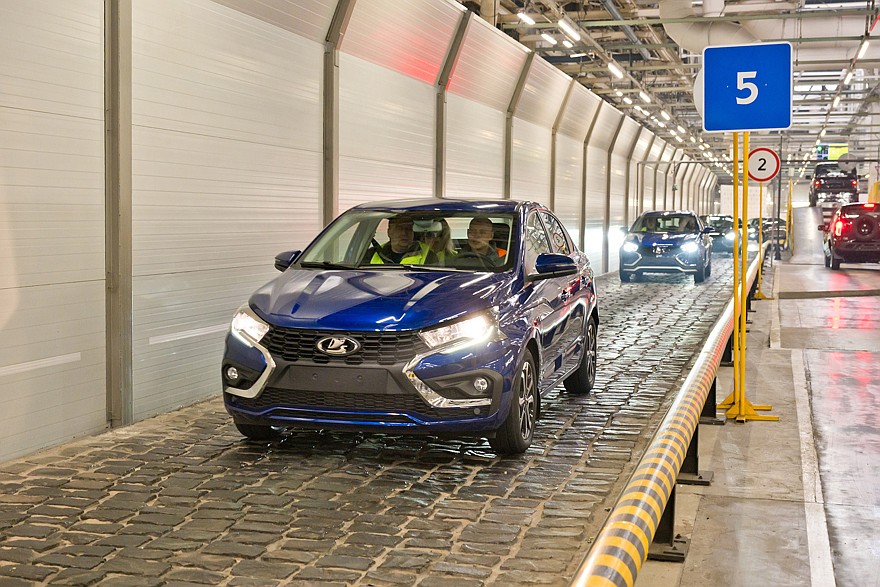 Перед тем, как отправиться на площадку готовой продукции, автомобиль проезжает по треку со специальными участками. Раньше все машины проходили через открытый трек, расположенный на территории завода. Теперь трасса трека проложена прямо в цеху.