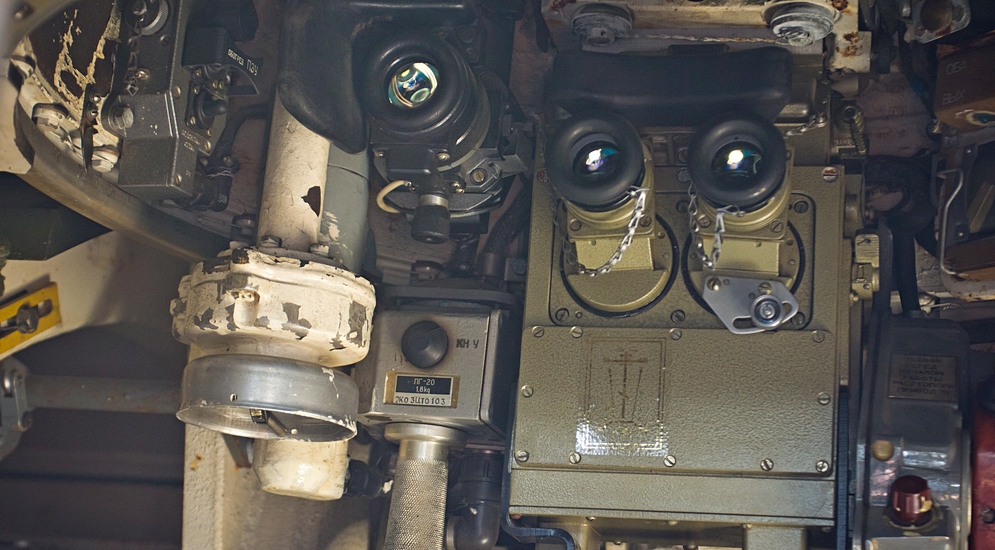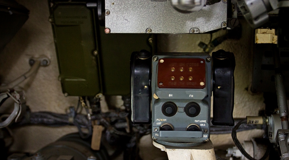Здесь мне показалось не так тесно, как на месте командира. Сиденье регулируется по высоте и… Чуть было не продолжил по привычке – углу наклона. Нет, никаких регулировок угла, бокового и поясничного подпоров здесь, конечно же, нет. Два положения кресла по высоте объясняются тем, что САУ можно вести, наблюдая за дорогой как изнутри установки (нижнее положение), через триплексы, так и высунув голову. Однако в этом положении вести огонь пушка не может, поскольку отработанная гильза выбрасывается как раз в то место, где в транспортном положении находится голова механика-водителя. А когда люк водителя закрыт, тогда и пушка может палить.