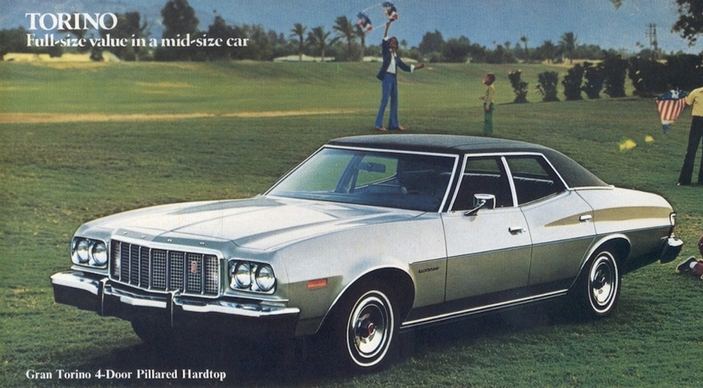 А вот каким был Ford Torino предпоследнего поколения. Очень даже неплохо выглядит, особенно в сравнении с киношным вариантом!