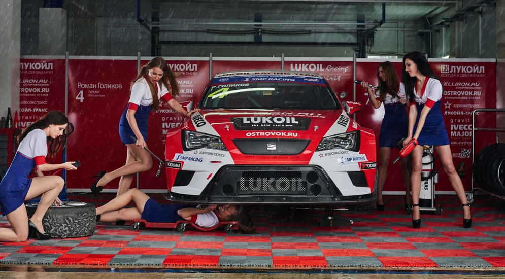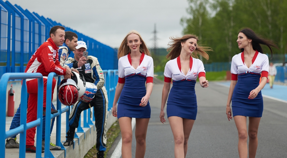 У девушек нелегкая работа, пусть она и не выглядит таковой на первый взгляд. И в жару, и в холод они должны сохранять улыбку на лице. В ветер попробуй-ка удержи шест с табличкой! В РСКГ и в субботу, и в воскресенье проходят четыре гонки, и каждый раз девушки в туфлях на высоких каблуках выходят на предстартовую процедуру, чтобы порадовать пилотов и зрителей. Им же приходится подниматься на подиум, чтобы помочь с вручением призовых кубков после гонки и стоять за спинами пилотов во время автограф-сессий, которые проводят в перерыве между заездами Российской серии кольцевых гонок.