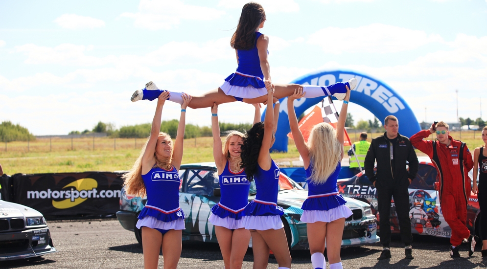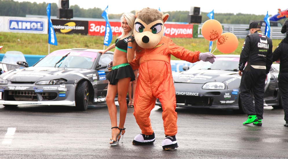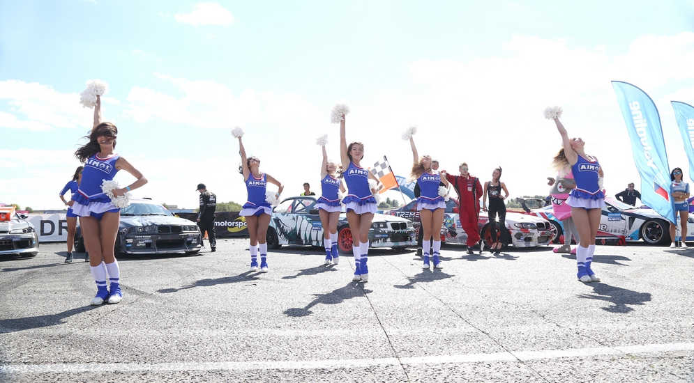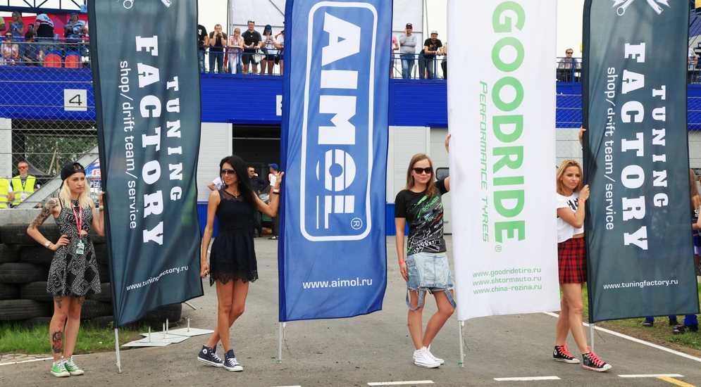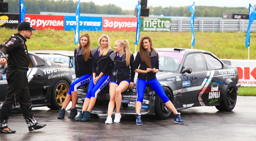 Практически у каждой дрифт-команды есть девушки, ярко напоминающие зрителям о партнерах пилотов своей брендированной одеждой. Но не только специализированные промо-girls, как у Toyo Tires, Valvoline, Gorilla Energy и других брендов, поддерживают пилотов. Улыбаются в камеру, позируют рядом с автомобилями, приветливо машут зрителям и держат командные флаги и «боевые» подруги – все красавицы, как на подбор.