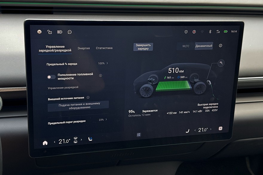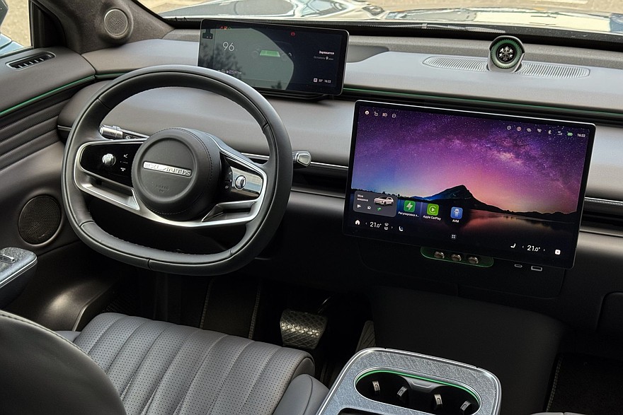 В отличие от некоторых других автомобилей, которые пытаются казаться премиальными, но не являются ими по сути, Exlantix ET действительно премиальный. И дело не только в очень качественных материалах отделки салона, включая кожу Nappa, электроприводах всего чего угодно, в том числе – дверей и лючка зарядного порта, наличии вентиляции и массажа сидений обоих рядов, оттоманки для переднего пассажира, ароматизации и ионизации воздуха, аудиосистемы премиум-класса с 23 динамиками, режима кемпинга с питанием электроприборов мощностью до 3,5 кВт и широчайшего комплекса систем активной безопасности. Тут есть и сугубо технические решения, свойственные автомобилям только высокого класса.