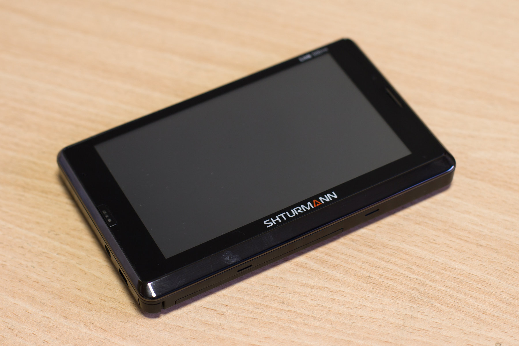 Корпус устройства выполнен целиком из черного гладкого пластика, дисплей заподлицо с передней панелью, по борту темная вставка под бронзу. Форма корпуса строго прямоугольная, углы острые, никаких скруглений. Что, кстати, впервые сделано «Штурман» — до этого все устройства компании имели скругленные углы.
