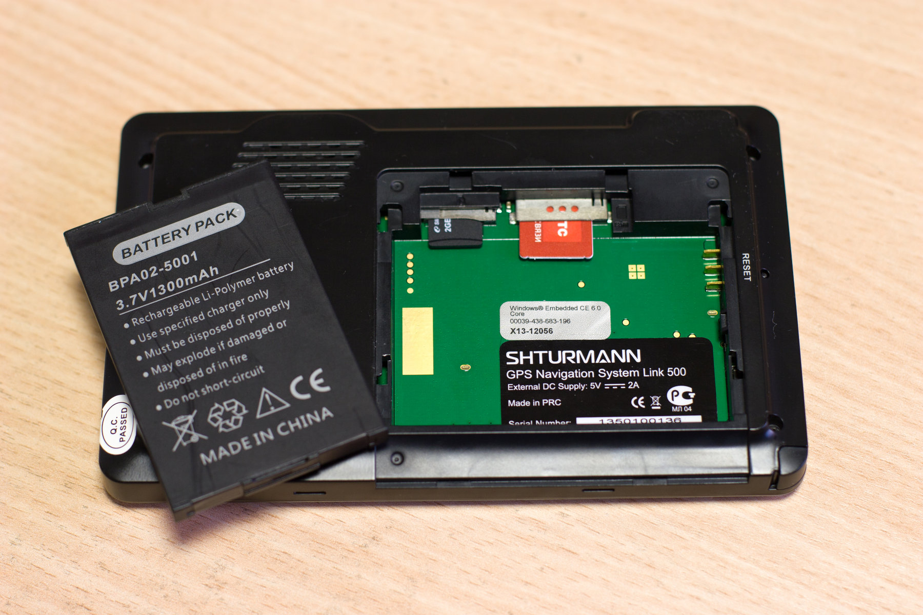 Батарея у навигатора сделана съемной, под ней располагаются слоты для microSD (до 8 Гб) и SIM-карты. В комплекте с прибором уже прилагается "симка" с эксклюзивным тарифом "Команда Штурман" с единой ценой 2.9 руб. за 1 Мб по всей России.