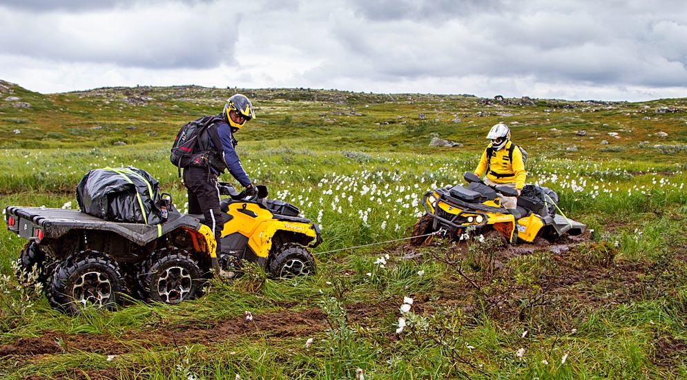 Или вот, например, еще одна прекрасная иллюстрация фразы: «Круто тебе – кататься на разных штуках и получать за это деньги». Тест внедорожной техники, разумеется, проходит вне дорог. Организаторы специально выбирают места поглуше, грязь пожирнее и комаров покровожаднее, ведь «полностью раскрыть потенциал» их квадроцикла можно только в «настоящем бездорожье»!