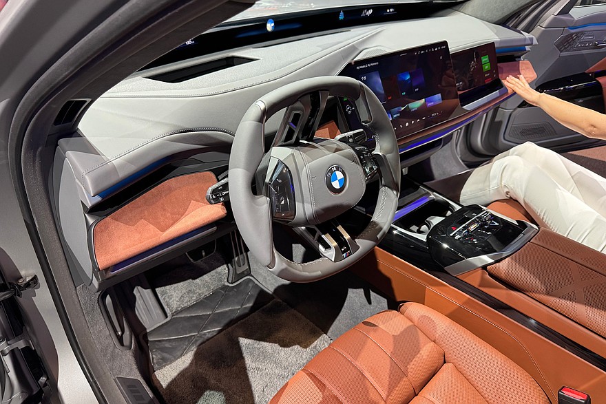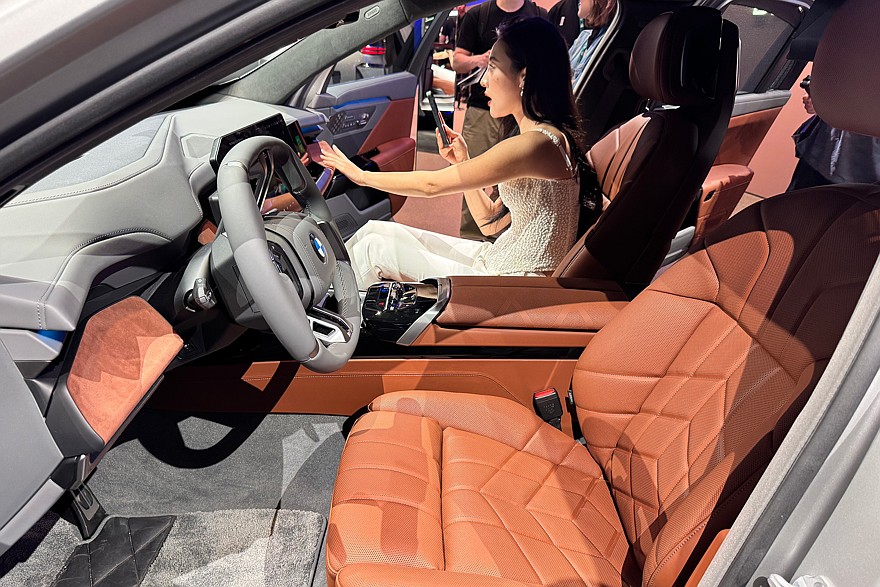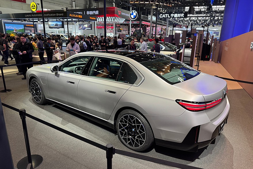 Корма тоже стала чуть аккуратнее: на удивление, здесь не появилось традиционного для поднебесного автопрома «монофонаря». Брутальности добавляют гладкие боковины, угловатые «ноздри» фирменной решётки радиатора и остроугольные выштамповки на капоте. Выглядит угрожающе – за что и любят «семёрку» её владельцы. Электрическая i7 была единственным на стенде матовым автомобилем, поэтому на фотографиях представлена именно она. В целом образ напоминает сейф на колёсах – массивный, холодный и явно не для всех.
