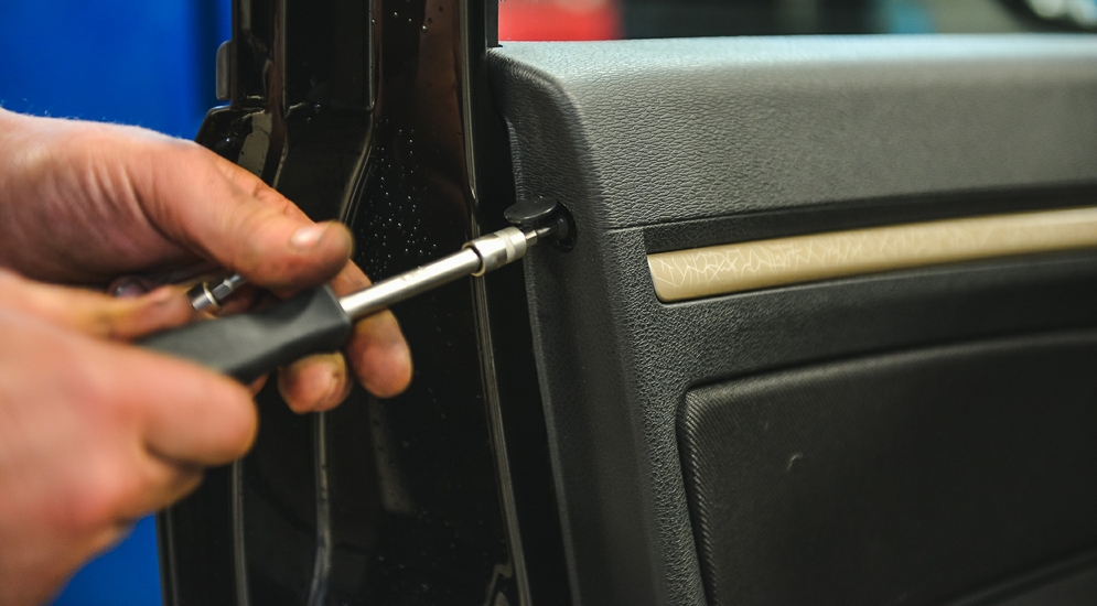 Со всеми этими «пирогами» мы приехали на СТО официального дилера Lada в Тольятти – «Рона». Сервисмены начали с обивки двери – установили, что она не совсем плотно прилегает к металлу, сняли её, внимательно изучили крепления, увидели потёртости на металле (вызванные, вероятно, как раз «люфтом» обивки) и наклеили небольшой кусочек вибропласта в зону над динамиком. Нельзя сказать, что после сборки двери «сверчок» ушёл совсем, хотя и стало тише. Равно как и нельзя сказать, что окончательно нашёлся источник этого «сверчка». Первоначально мы грешили на неплотно затянутую вставку дверного поручня, теперь вот сняли обивку… стопроцентного эффекта наши меры пока не дали, поэтому будем продолжать изучать этот вопрос.