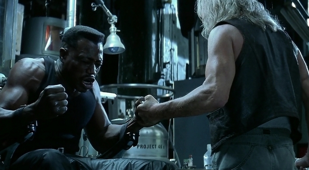 В роли Блейда Уэсли Снайпс действительно немногословен. Но каждой своей позой и выражением лица он всегда дает понять, что чувствует, или о чем думает