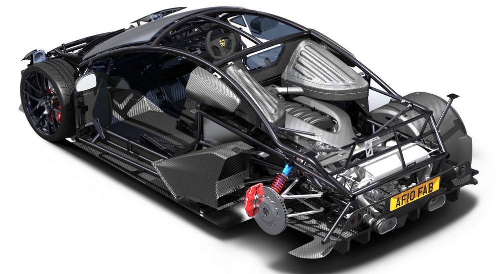 За спинами водителя и пассажира разместился форсированный нижневальный двигатель V8 Chevrolet LS7 рабочим объемом 7 литров, который позаимствовали от Chevrolet Corvette Z06 шестого поколения. Полностью алюминиевый двигатель, не оснащенный какими-либо системами наддува, развивает 550 л.с. и почти 700 Нм крутящего момента, который передается на задние колеса через 6-ступенчатую механическую коробку передач итальянской фирмы Graziano. С таким арсеналом AF10 разгоняется до «сотни» за 3,4 секунды, а максимальная скорость машины превышает 320 км/ч. Осаживать машину с таких скоростей призваны карбон-керамические тормозные диски, поставляемые AP Racing, a в оснащение английского суперкара вошли мультимедиа-система со встроенной навигацией, управляемая с помощью сенсорного монитора, и кондиционер с двухзонным климат-контролем, а для облегчения маневрирования при движении задним ходом на бампере установили широкоугольную камеру.