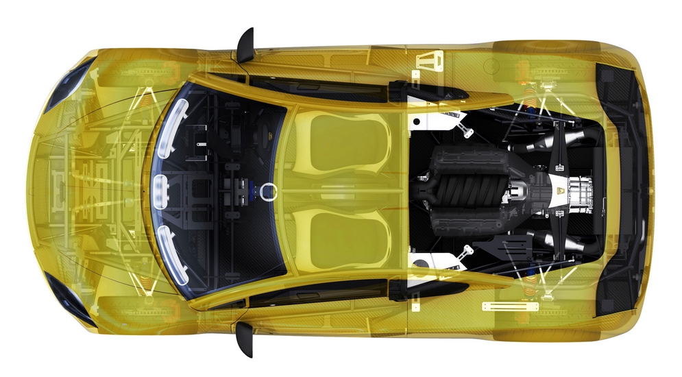 В моторном отсеке разместился атмосферный 6,8-литровый V-образный 8-цилиндровый двигатель от Corvette Z06, который развивает 560 л.с. и 645 Нм крутящего момента, который передается на заднюю ось через 6-ступенчатую механическую трансмиссию. В результате спурт 0-100 км/ч занимает у новинки всего 3,5 секунды, а максимальная скорость достигает 325 км/ч.