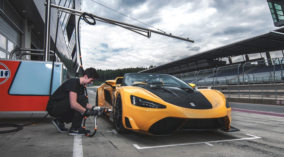 Под такой мощный двигатель пришлось пересмотреть геометрию подвески и изготовить почти все внешние элементы кузова из углепластика.
