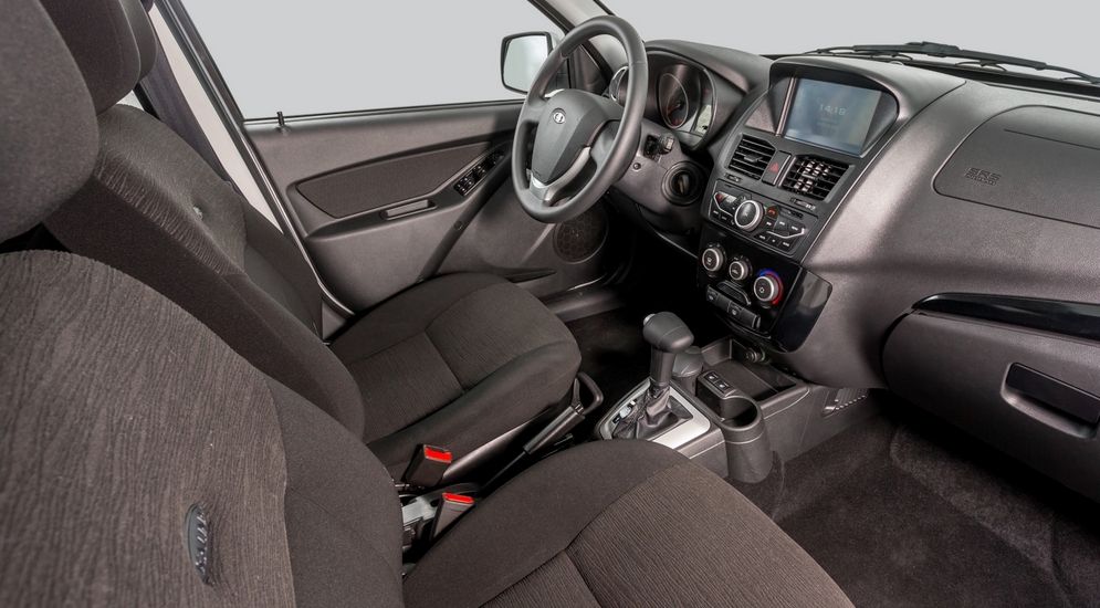 На момент выхода в 2014 году отличия салона Lada Kalina Cross от салона обычной Калины были заметны невооружённым взглядом, потому что тут были оранжевые тканевые вставки на сиденьях и такого же цвета окантовки дефлекторов и накладка рулевого колеса. Но в 2015-м появилась более спокойная версия салона – все упомянутые «акценты» стали нейтрального серого цвета.